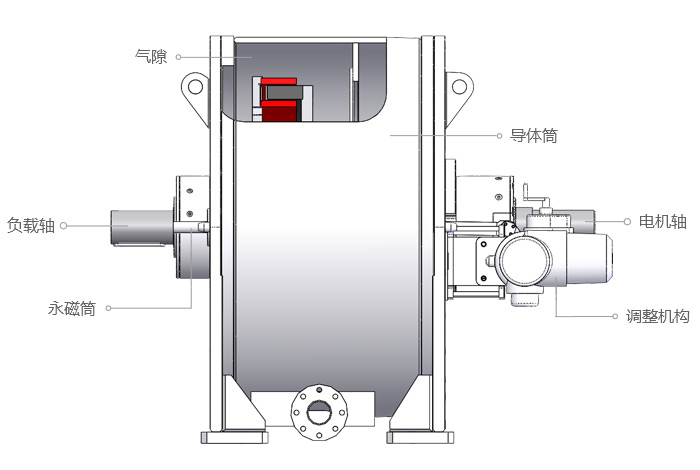 永磁調(diào)速器扭矩傳遞原理和耦合器相同,在耦合器基礎(chǔ)上增加了調(diào)速機(jī)構(gòu),通過(guò)電動(dòng)執(zhí)行器,可以調(diào)節(jié)導(dǎo)體和永磁體的有效耦合面積,改變兩者之間傳遞的扭矩大小,實(shí)現(xiàn)可調(diào)節(jié)、可控制的扭矩輸出,達(dá)到負(fù)載調(diào)速和節(jié)能的目的。